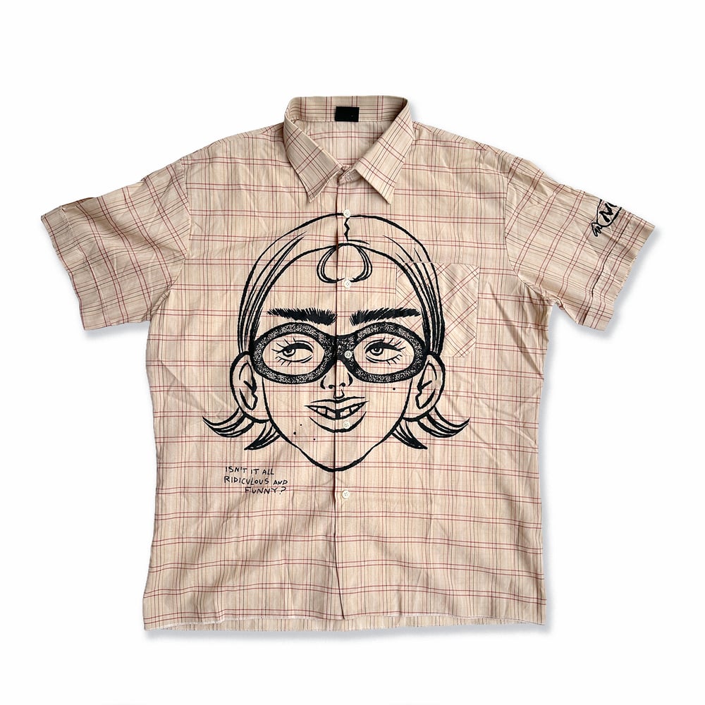 Camisas de segunda mano con ilustración serigrafiada. Diseñadas por Núria Just y serigrafiadas a mano por Máquina Total. Perfectas para overlaying.