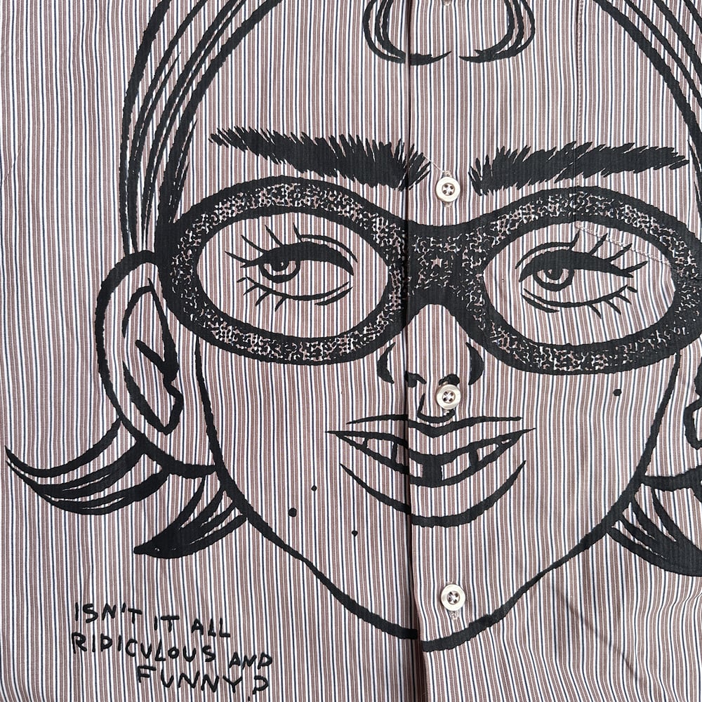 Camisas de segunda mano con ilustración serigrafiada. Diseñadas por Núria Just y serigrafiadas a mano por Máquina Total. Perfectas para overlaying.
