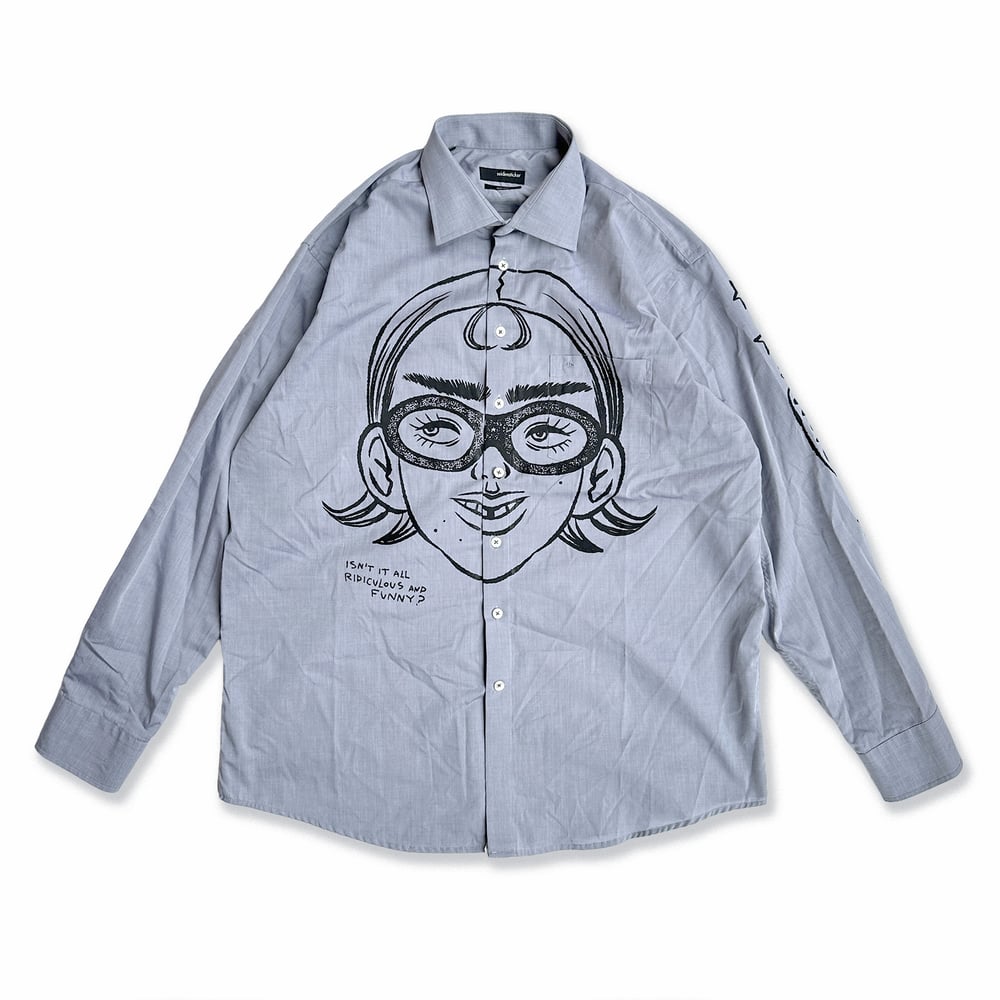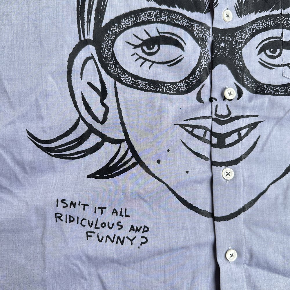 Camisas de segunda mano con ilustración serigrafiada. Diseñadas por Núria Just y serigrafiadas a mano por Máquina Total. Perfectas para overlaying.