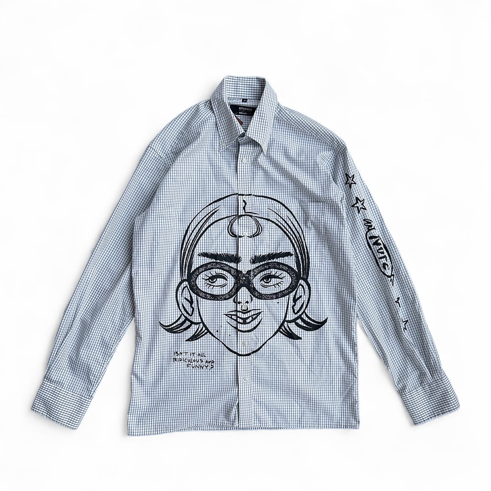 Camisas de segunda mano con ilustración serigrafiada. Diseñadas por Núria Just y serigrafiadas a mano por Máquina Total. Perfectas para overlaying.