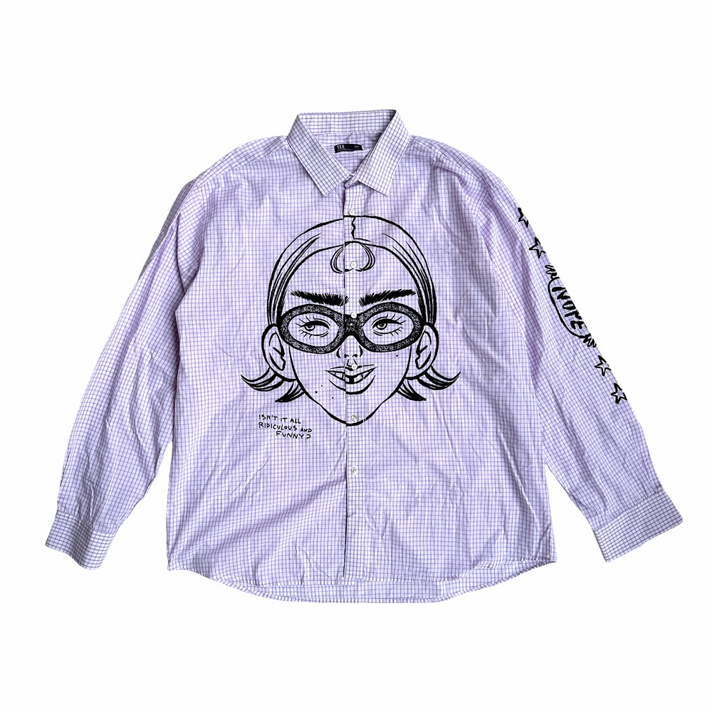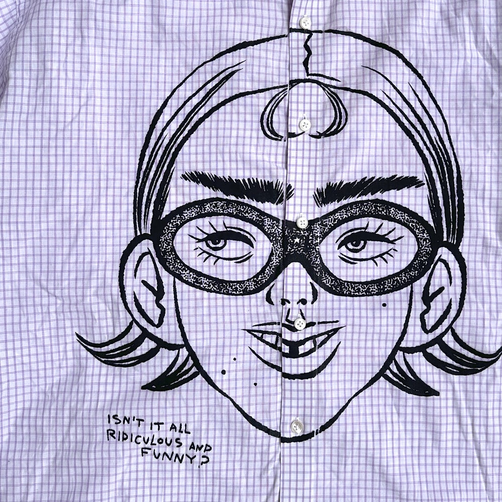 Camisas de segunda mano con ilustración serigrafiada. Diseñadas por Núria Just y serigrafiadas a mano por Máquina Total. Perfectas para overlaying.