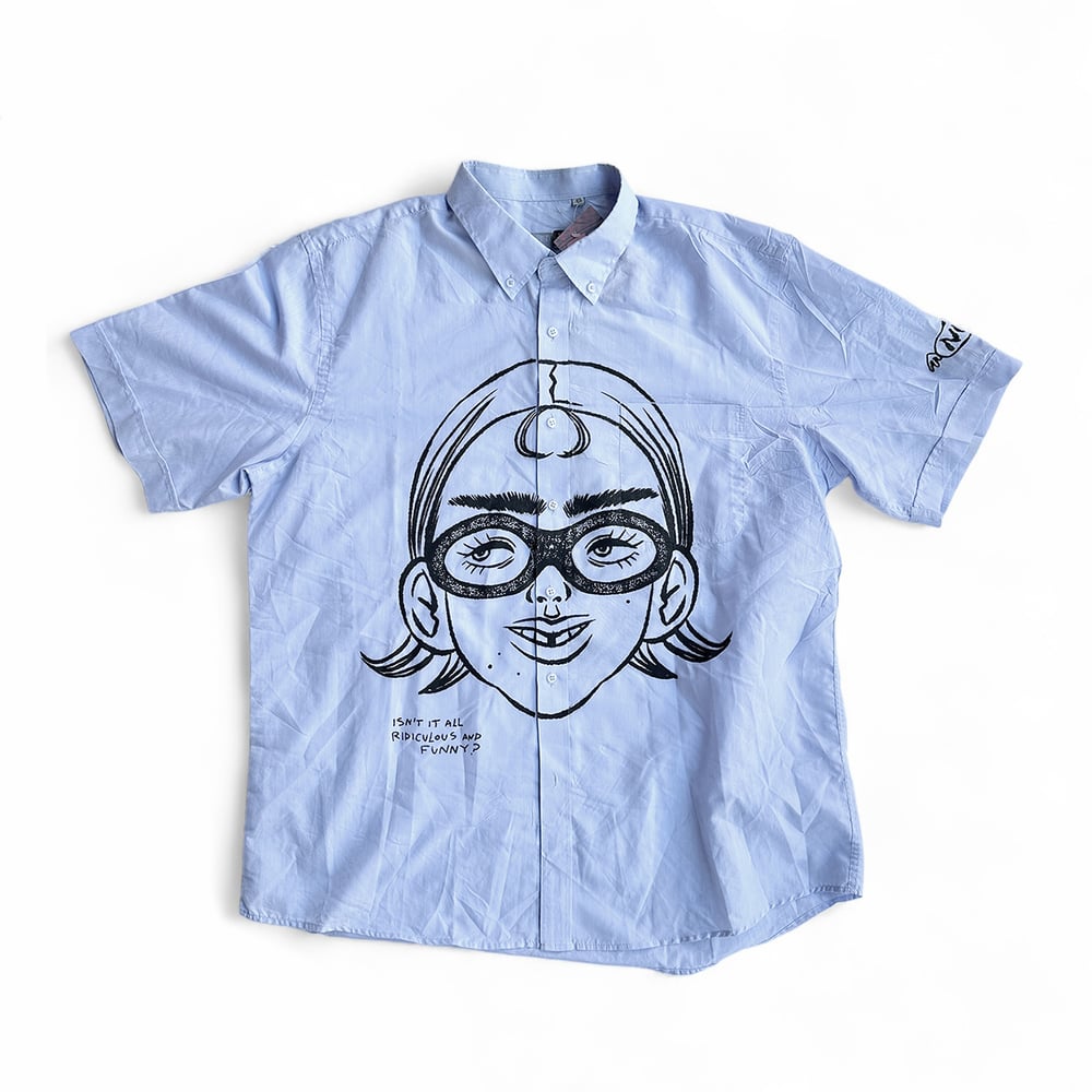 Camisas de segunda mano con ilustración serigrafiada. Diseñadas por Núria Just y serigrafiadas a mano por Máquina Total. Perfectas para overlaying.